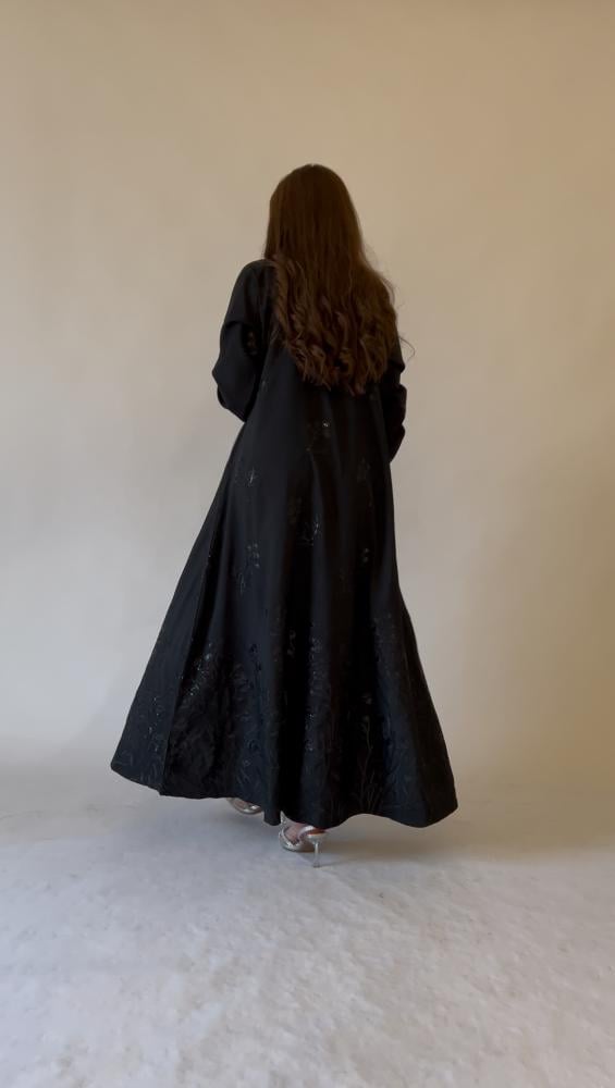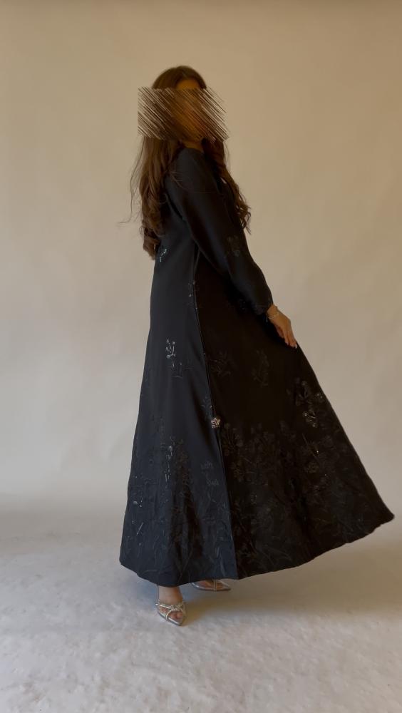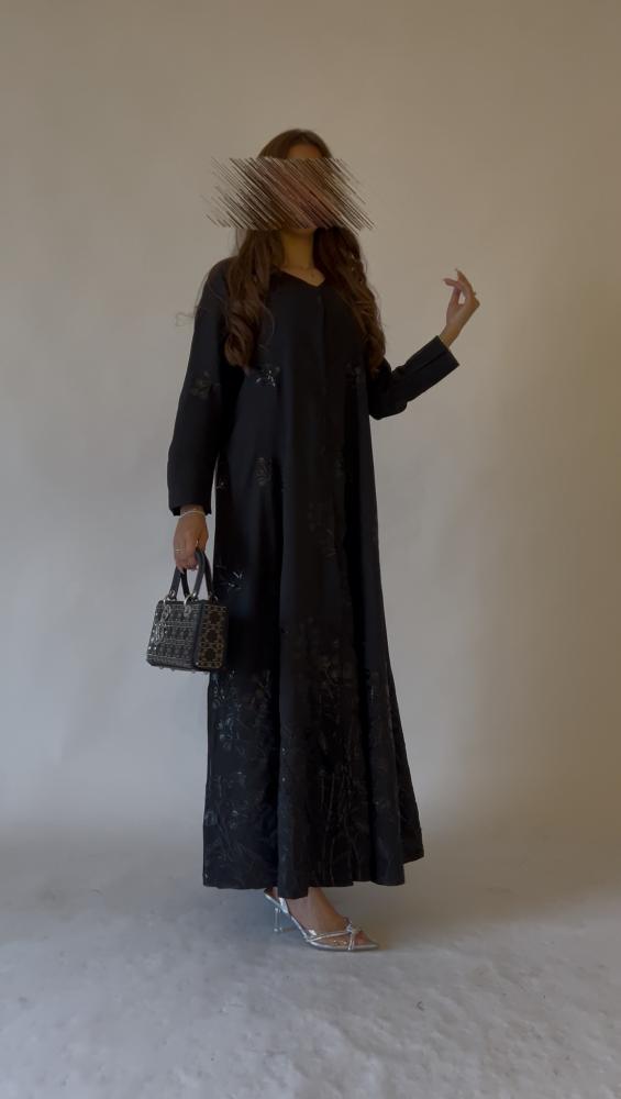 القصة نصف كلوش والعباية مقفلة ب ازارير من الامام لإحساس اكثر بالراحة والطرحه ساده سوداء